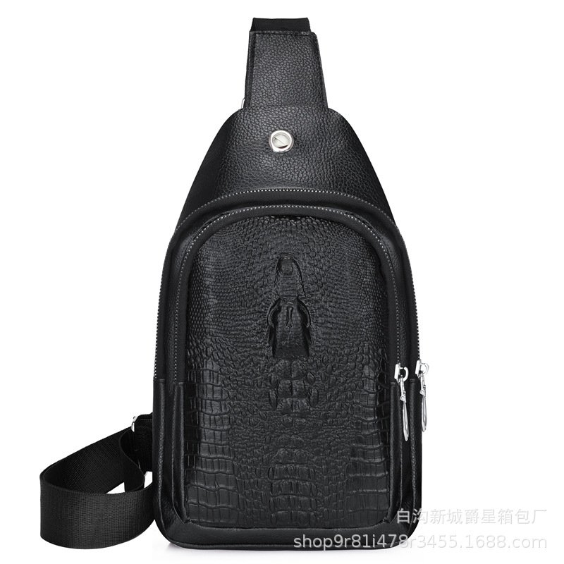 新款男士鱷魚紋真皮胸包