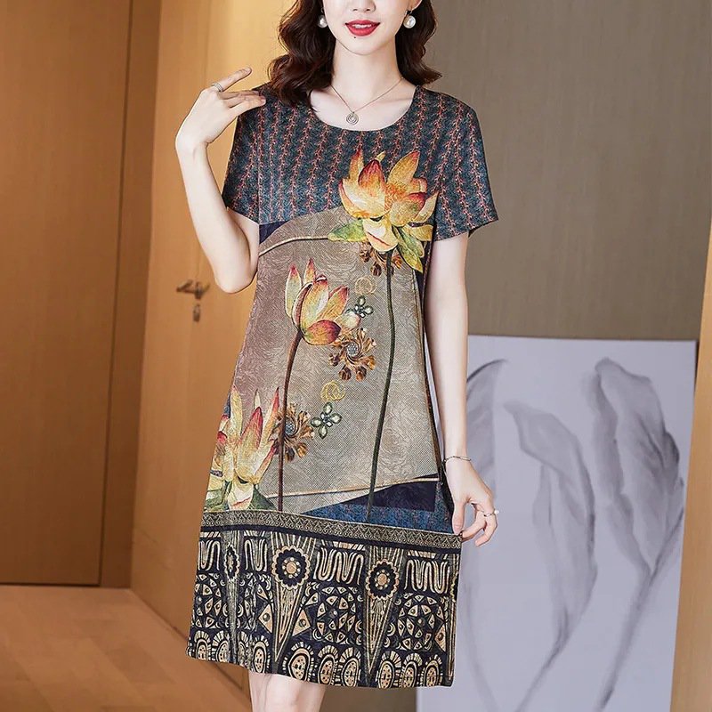 【减齡20歲】女士韓版時尚冰絲印花套裝